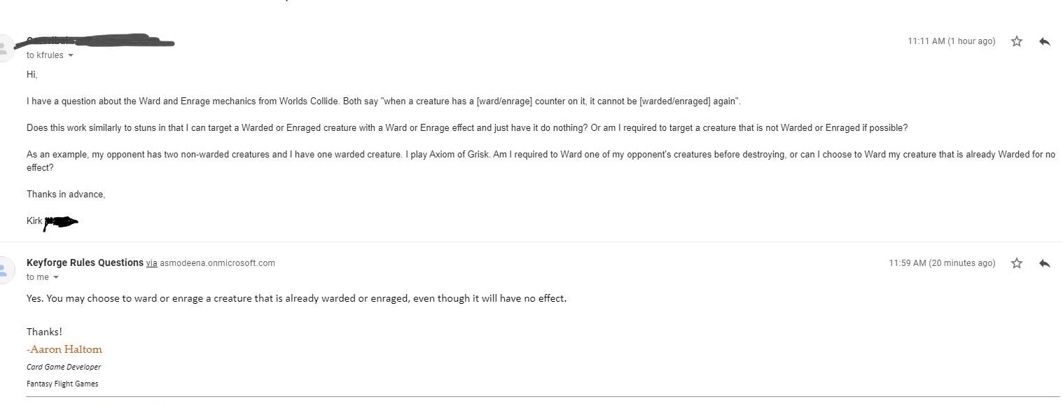 Clarification that you can target an already Warded or Enraged creature